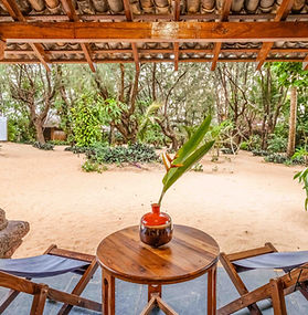 Goan charm in every detail. Raman Beach Villas are set in a leafy courtyard just steps from the sea, featuring laterite stone columns, antique wooden furniture, traditional tiled roofs, and open-sky elements. Each villa layout is unique but all combine elegance, warmth, privacy and a garden path that leads straight to the beach.